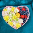 Альстромерии и хризантемы в ящичке