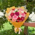 Бело-красные гвоздики с розами