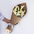 Букет хризантем с маттиолами в крафте