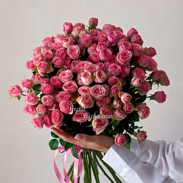 Букет из 15 розовых кустовых роз (60 см)