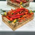 Букет из подсолнухов и роз с яблоком