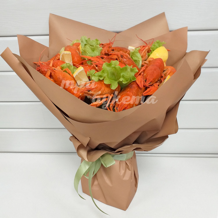 Букет из раков, лимона и салата