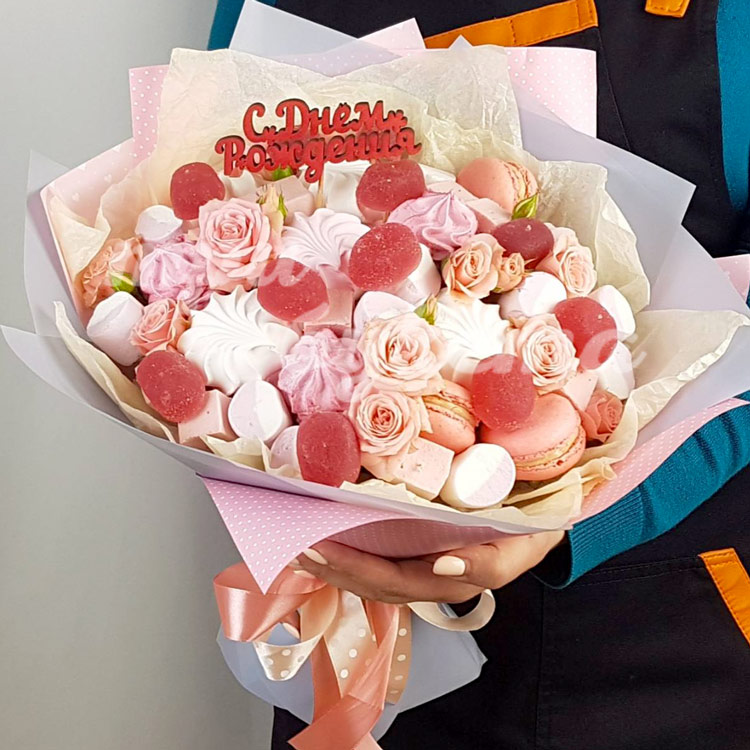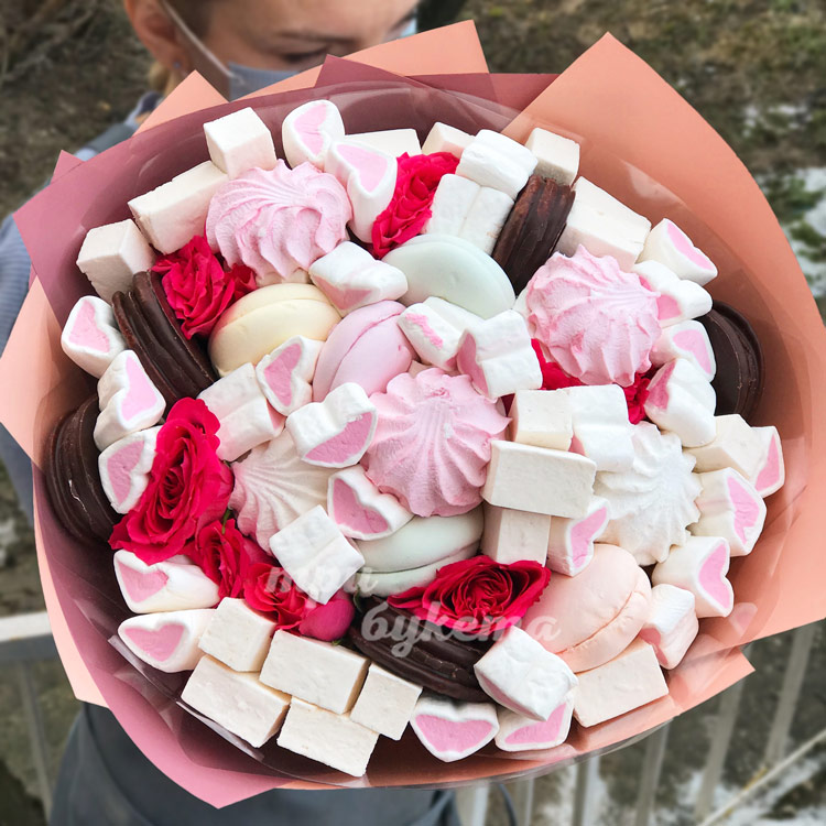 Букет из зефира и макарун