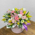 Эустомы и макаруны в коробке