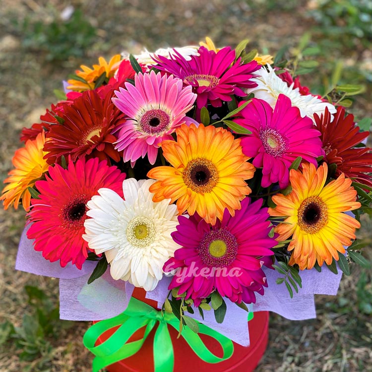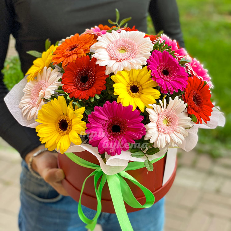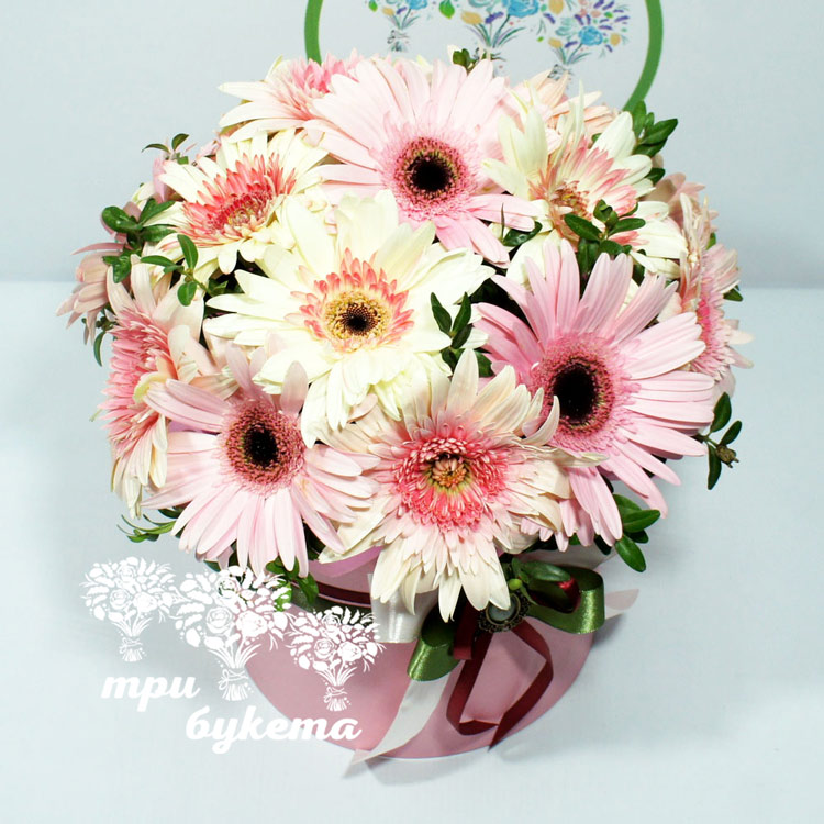 Герберы в шляпной коробке