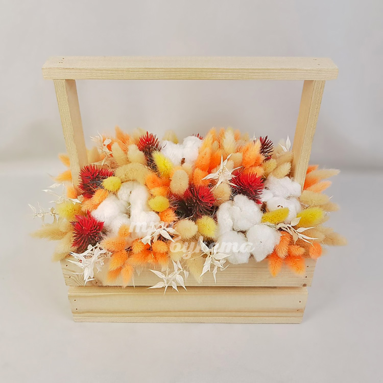 Хлопок и гелихризум в ящике