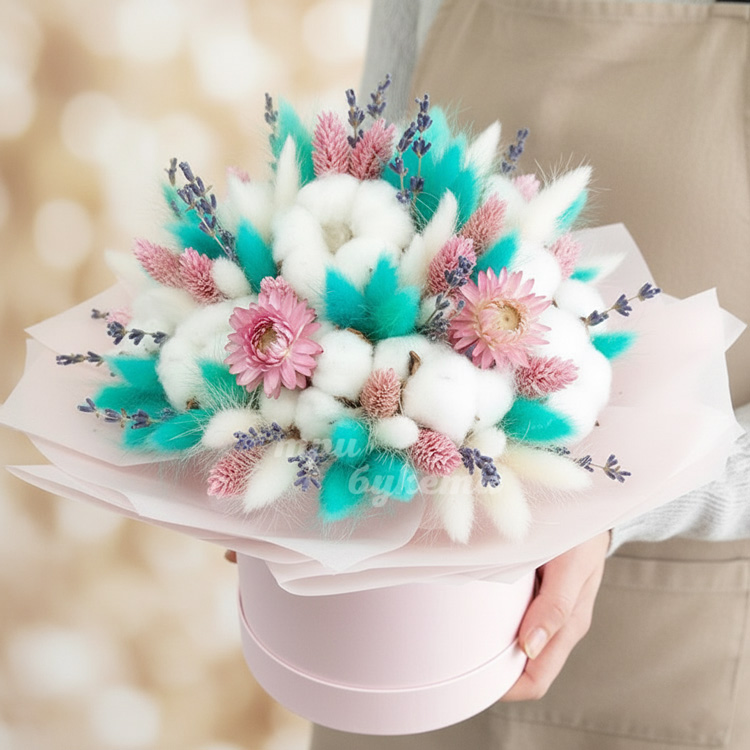 Хлопок и лагурус в шляпной коробке