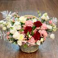 Коробка розовых и кремовых кустовых роз