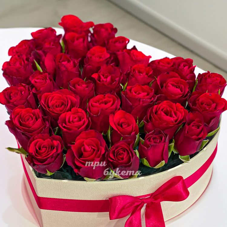 Коробка-сердце из 33 красных роз