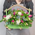 Корзина кремовых кустовых роз с гипсофилой