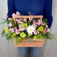 Корзина с белой сиренью и зеленью