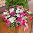 Корзина с клубникой и кремовыми розами
