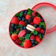 Корзина с макарунами и клубникой