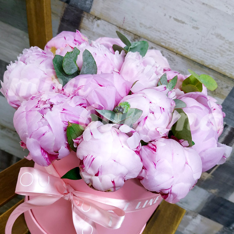 Розовые пионы в коробке