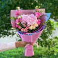 Розовый букет альстромерий и кремовых роз
