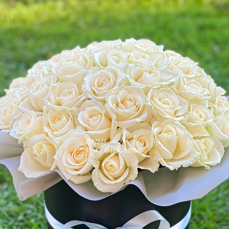 Шляпная коробка 45 белых роз