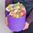 Ящик фиолетовых хризантем и лимониума